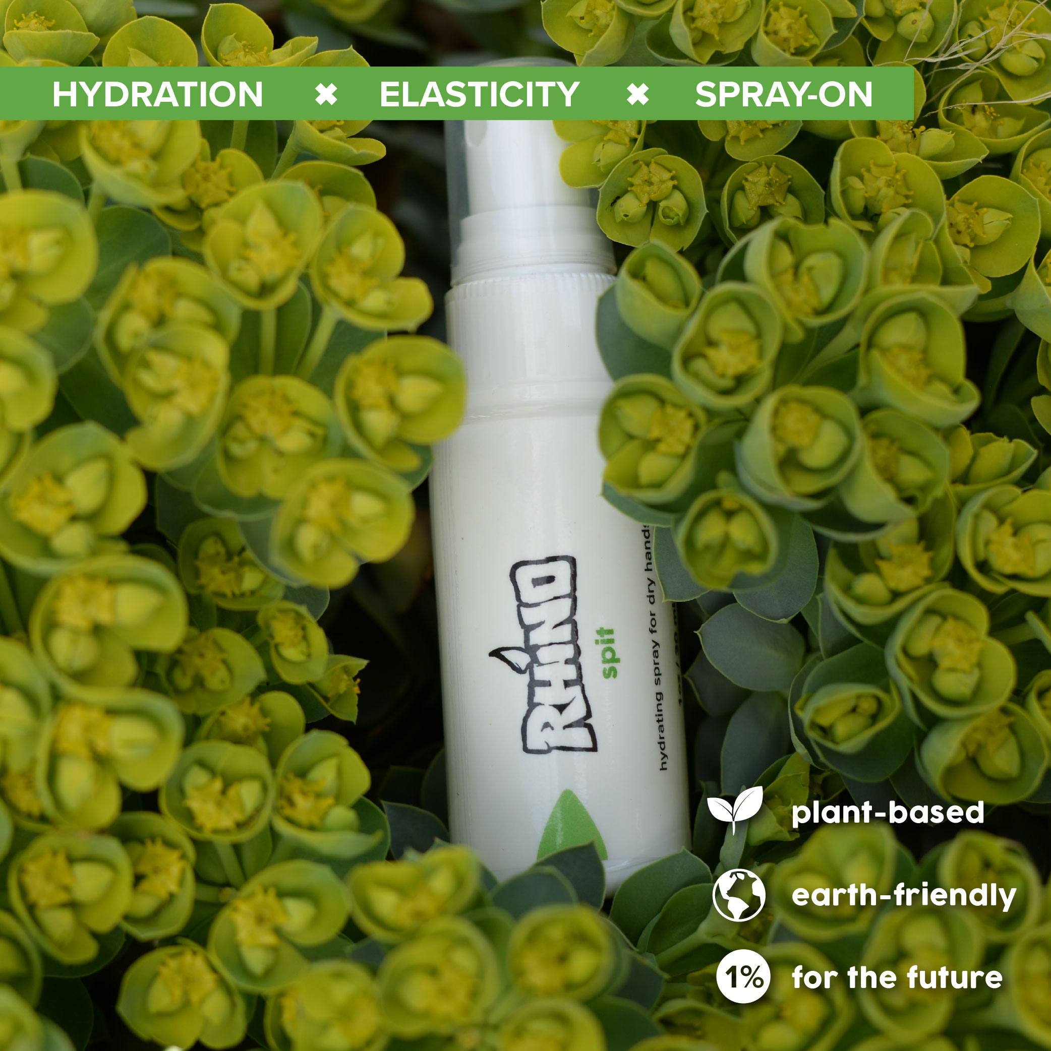 Rhino Spit is a non-greasy, aloe-based spray that is quick to absorb. Hydrating spray to reduce dry fire and glassy skin. Promotes skin hydration and elasticity to increase friction on holds.