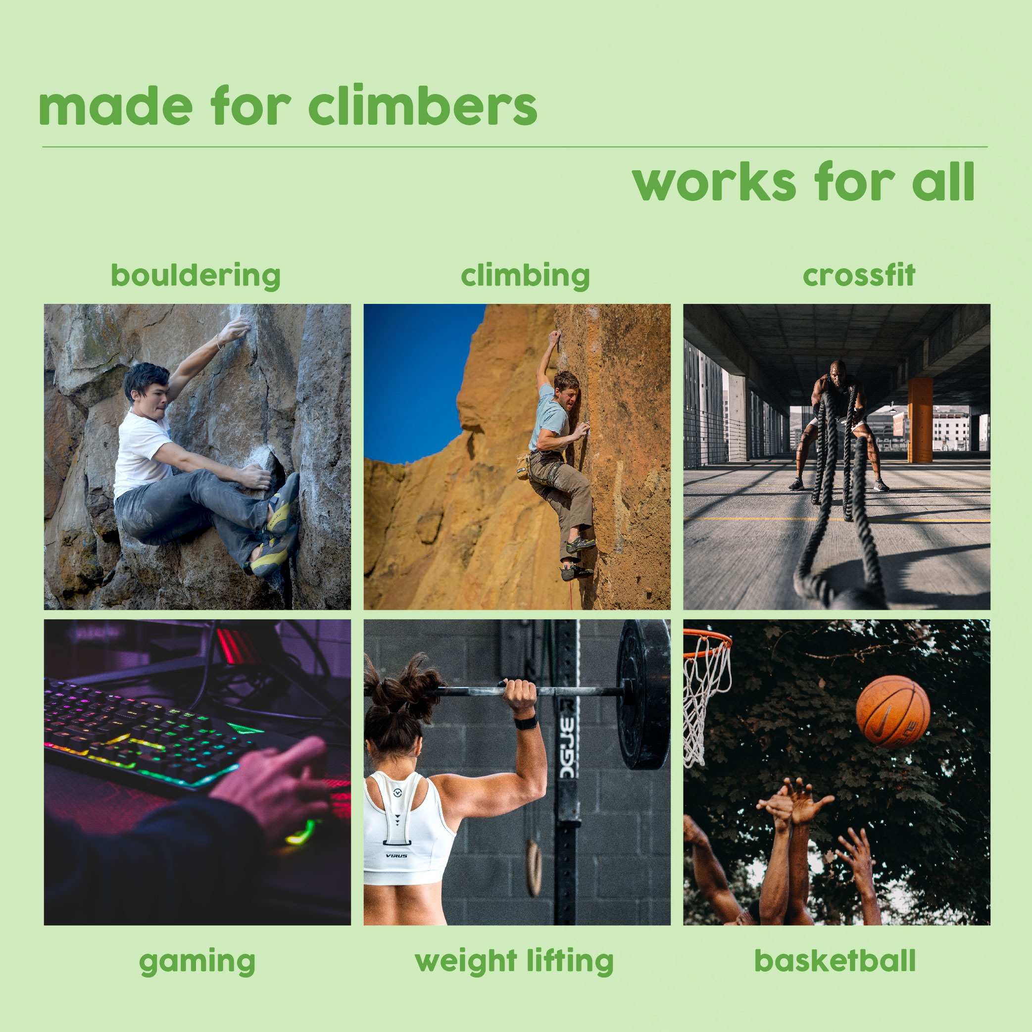 This product works really well in the gym where the holds are a little bit slick and chalky.
